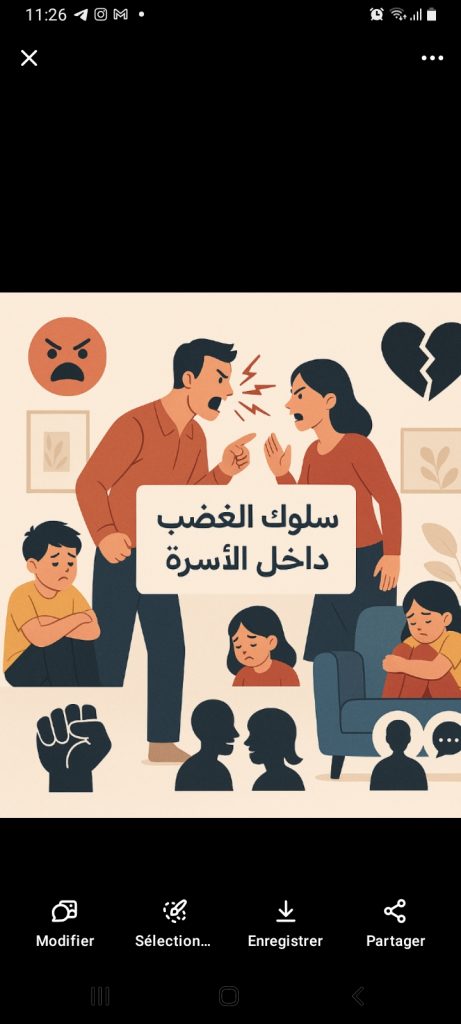 الغضب هو شعور طبيعي ، وانفعال . وداخل الأسرة هو تعبير احد أفرادها ( الاب، الأم، او طفل …) عن انفعالاته السلبية بشكل حاد ومؤد…